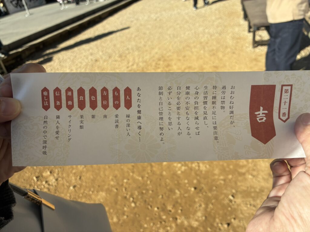 ここ数年は神社へご祈祷へ行っています。 今年も行ってきました。「諫早神社」 平日にも関わらず人が多い💦 この日が仕事始めの会社も多かったのかもしれませんね。 私達も無事にご祈祷していただきました。 せっかくなので記念写真。 最近健康に難がある私には健康おみくじ… 結果は「吉」内容を見ると… 当たり過ぎて怖かったです(笑) 皆さんも時間がありましたら諫早神社で行ってみてはいかがでしょうか~ 共有:Tweet クリックして友達にメールでリンクを送信 (新しいウィンドウで開きます) メールアドレス その他 関連