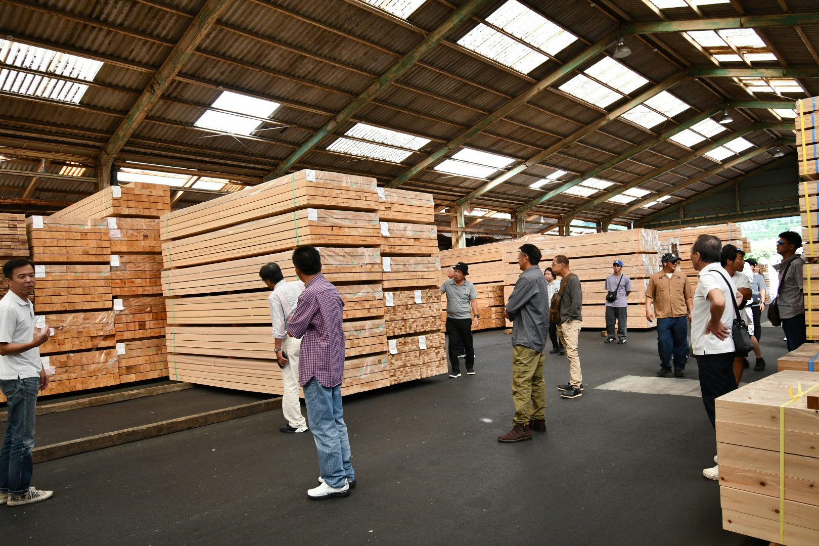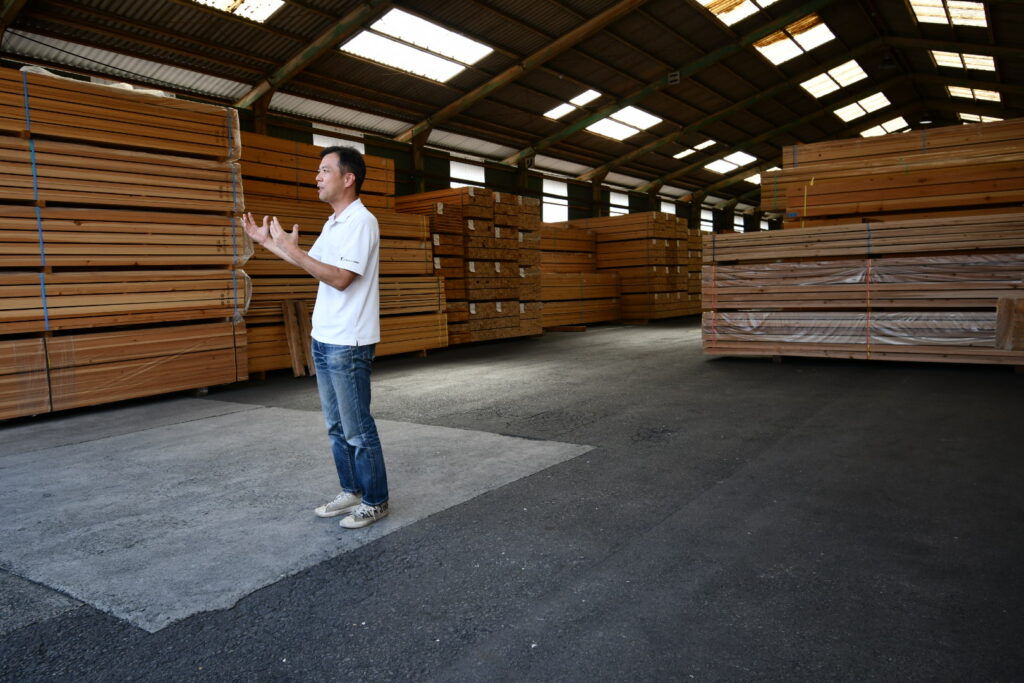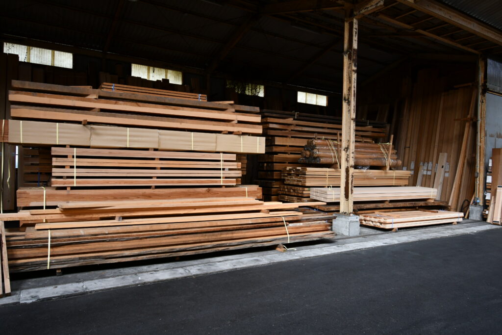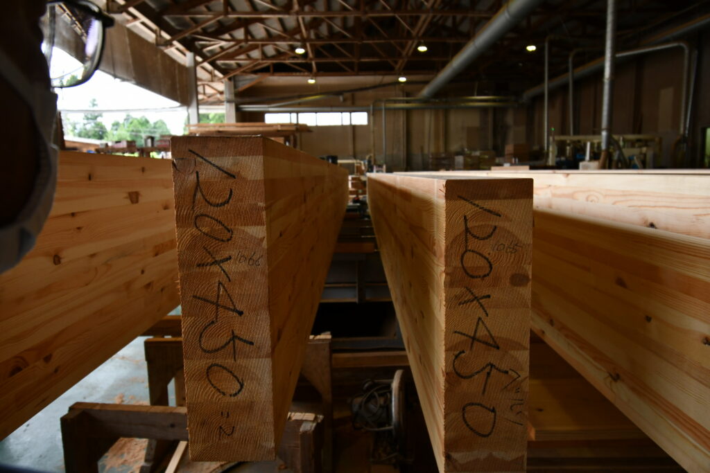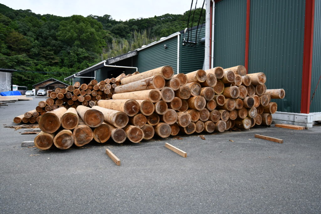 ここも規模が規格外でした。しかも良質な桧や杉といった原木が積まれており、