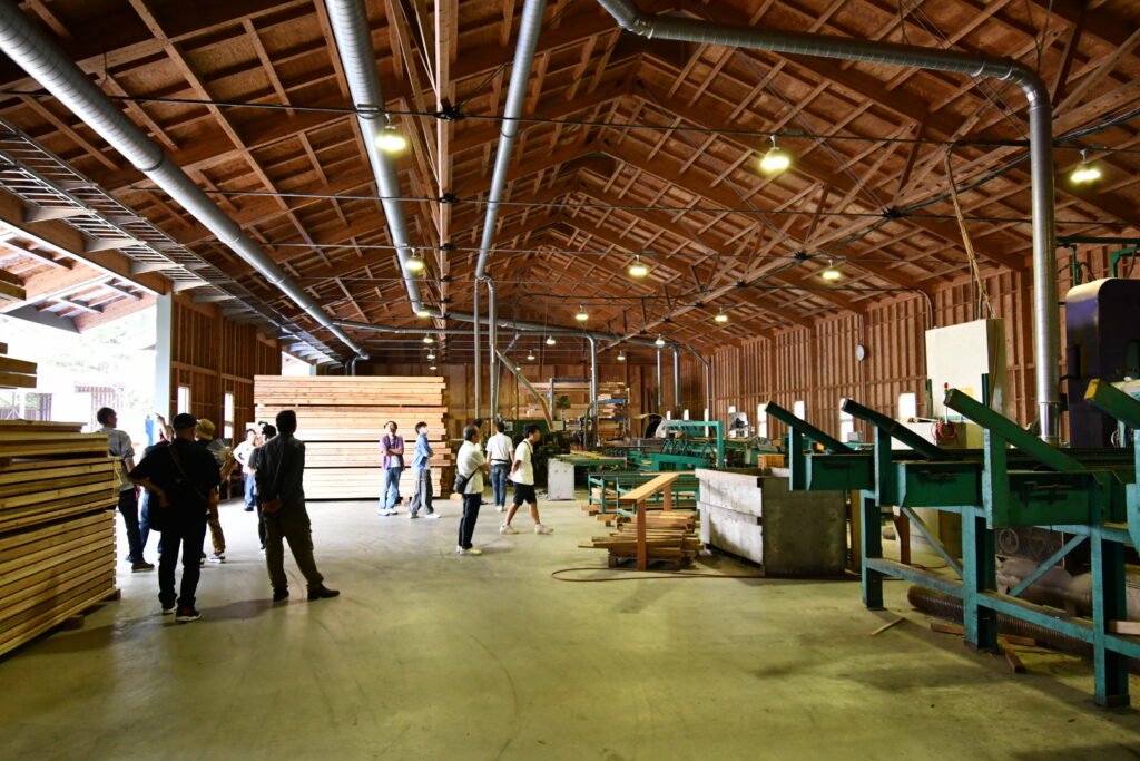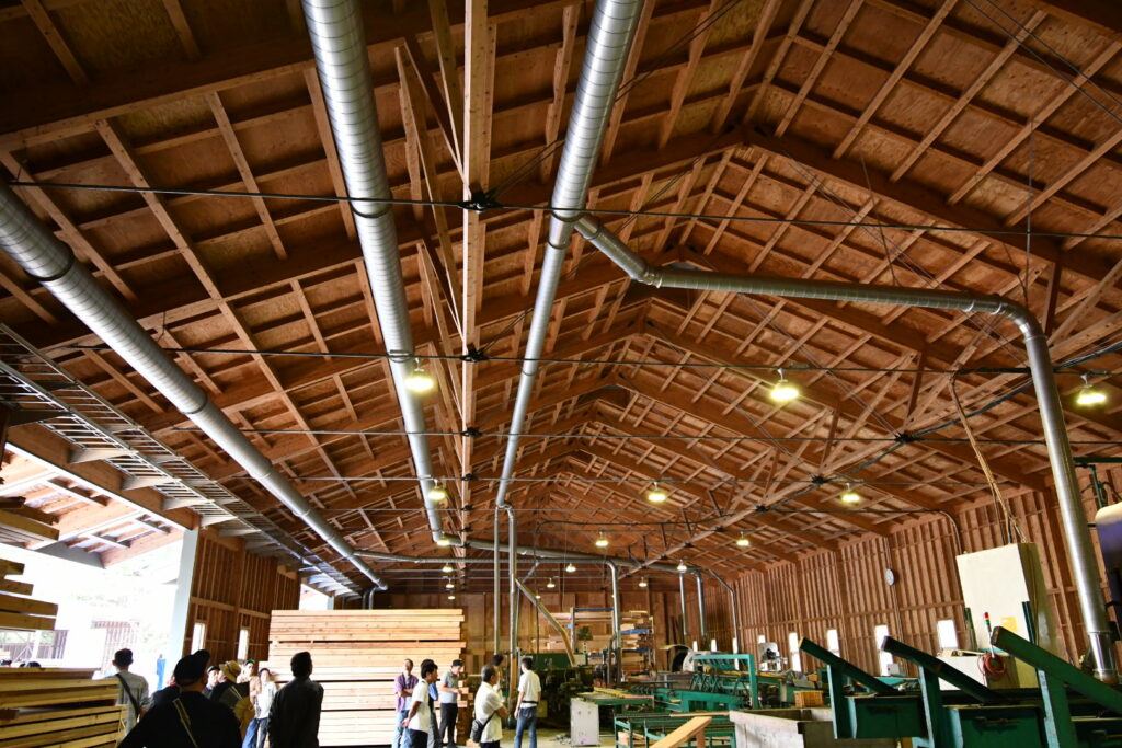 広い倉庫内を見学させていただいた後は山間にあるプレカット工場へ。
