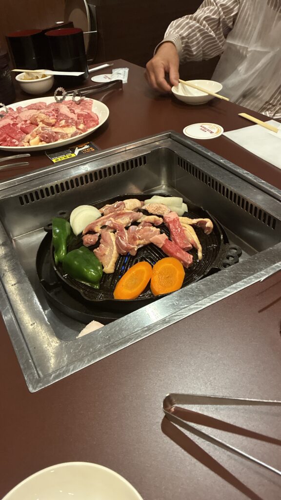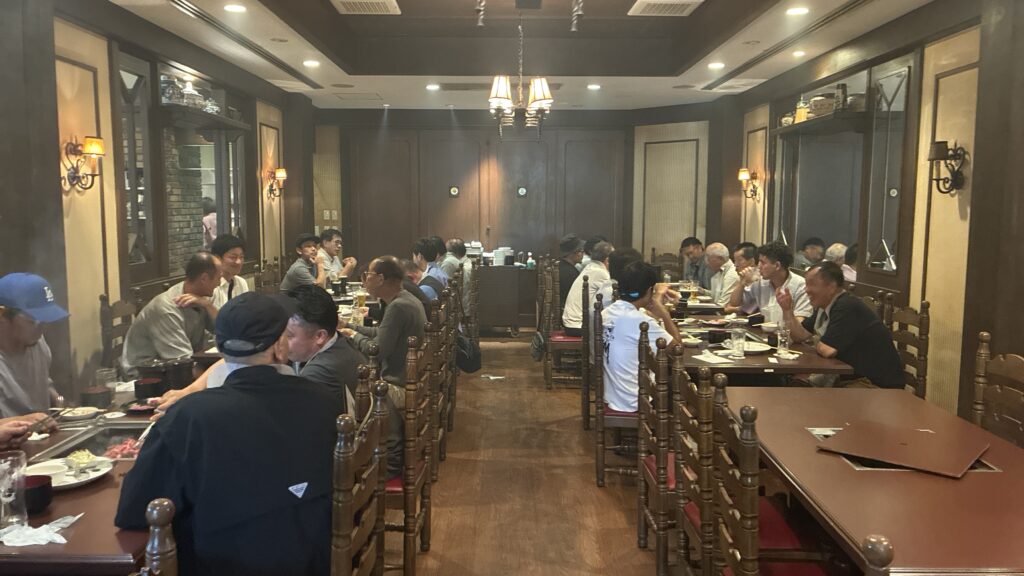 たくさんの木材を研修した後は昼食。少し移動して福岡のビール工場に併設してある焼肉店へ