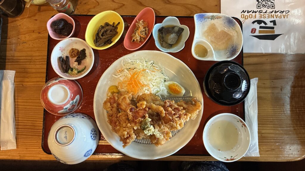 大盛りのとり天定食を食べ夢吊大橋へ。