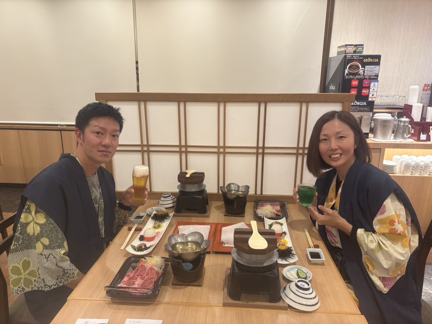 夕食も美味しかったです。お腹一杯になりました。飲み放題も嬉しいサービスです。