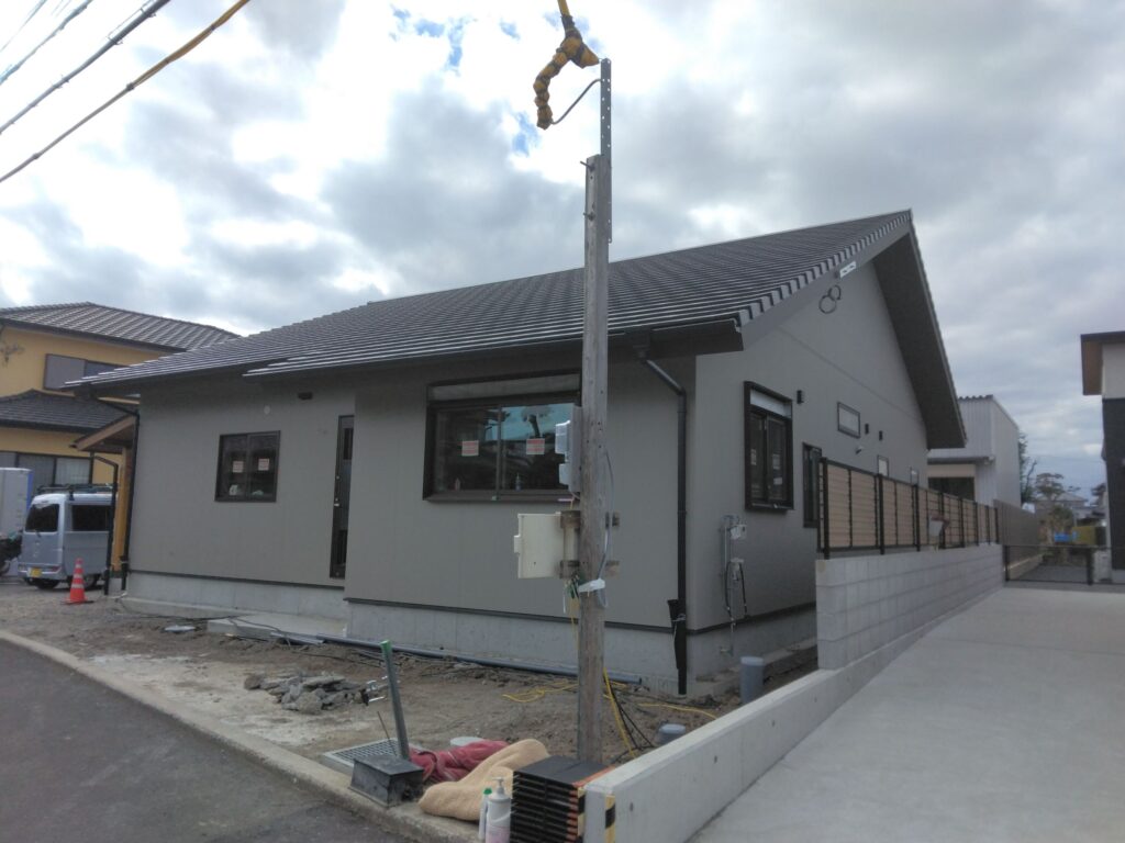 スッキリとしたしんぷるながいかんはグレー調のいい感じに。木質感との調和もとれていいバランスだと思います。